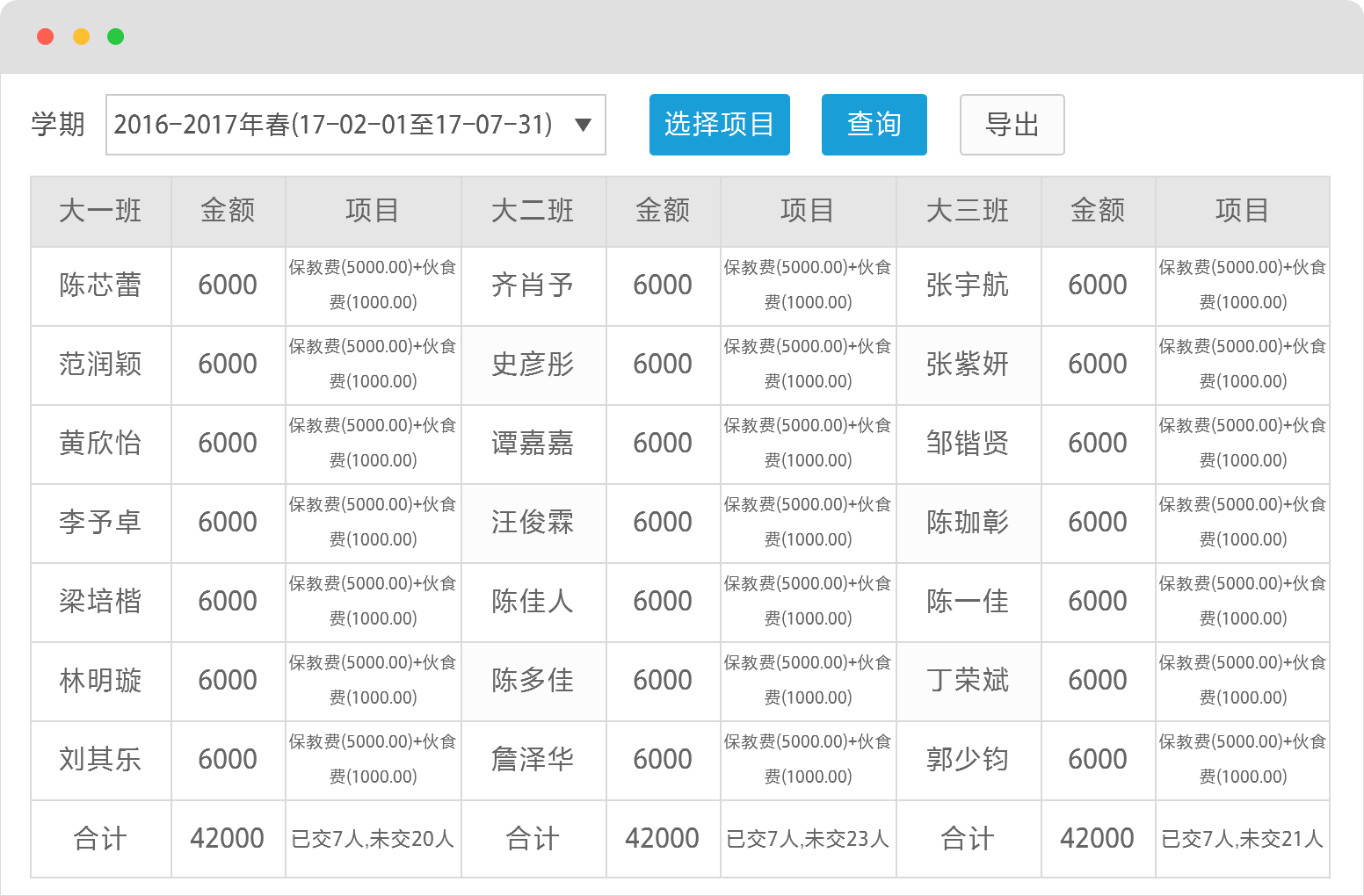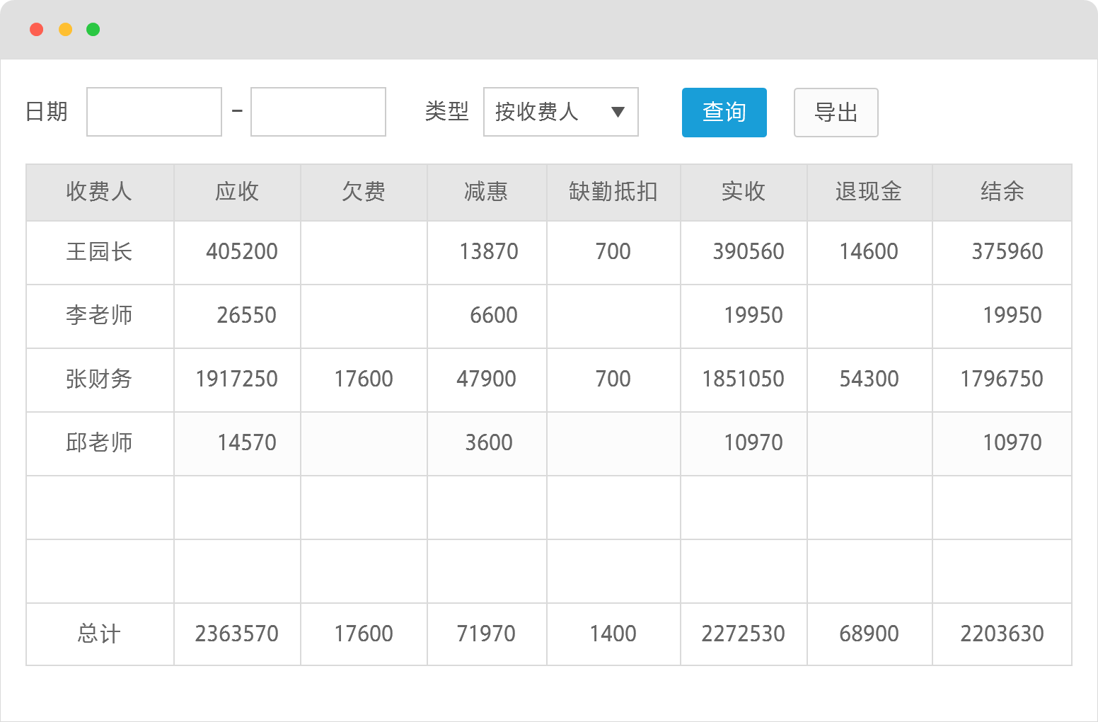 4.便于管理:系统可以统一管理各项费用,包括学费、餐费、杂费等,便于园方进行财务管理。